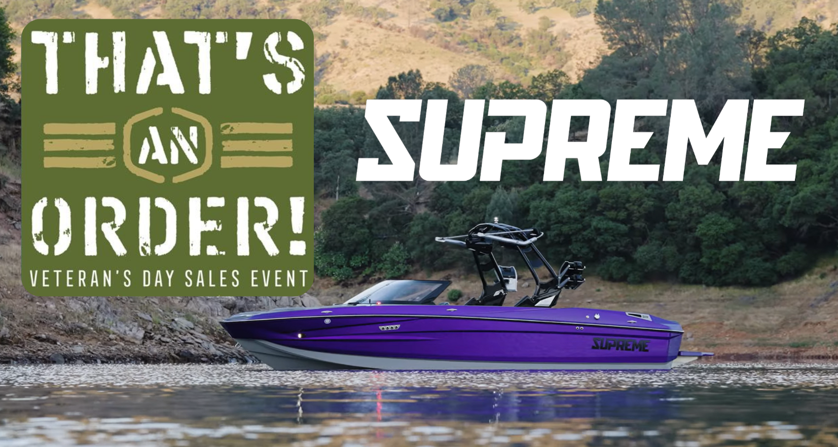 Up to $5,000 off new Supreme Boats through Veterans Day 2025. Military service members & Veterans will be honored with up to $10,000 off new custom orders or stock 2026 Supremes. Call or text us at (712)332-2701 for more information.
