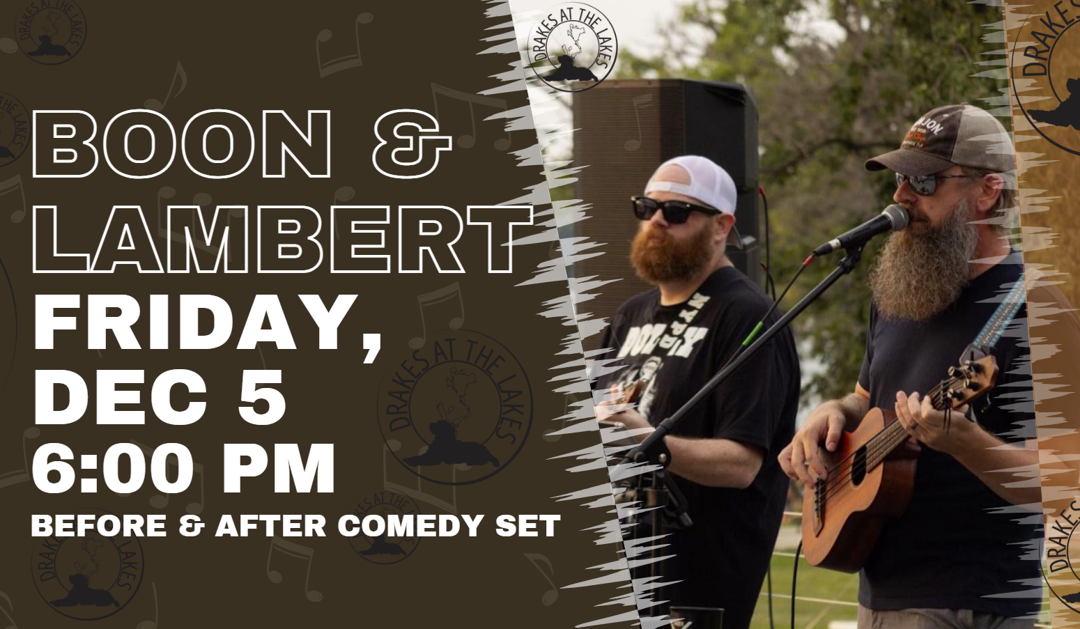 Friday, December 5th, 2025 - 6PM: FREE COMEDY WITH BOON & LAMBERT LIVE MUSIC