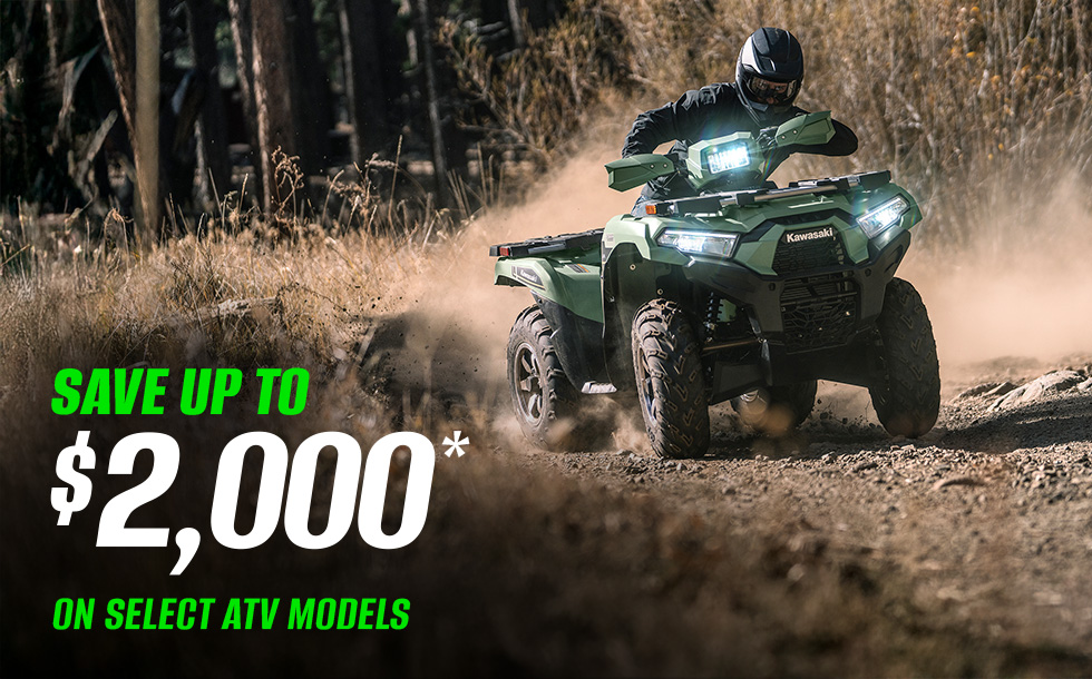 Incentives shown available at participating Kawasaki dealerships, model & year exclusions apply. Subject to change without notice. Offer available on approved purchases of select new, unregistered Kawasaki vehicles. Offer valid for a limited time only.